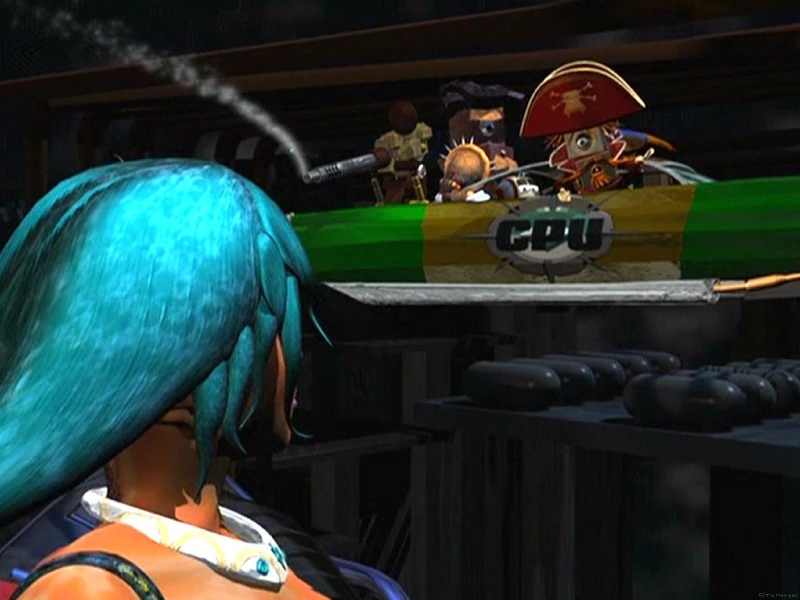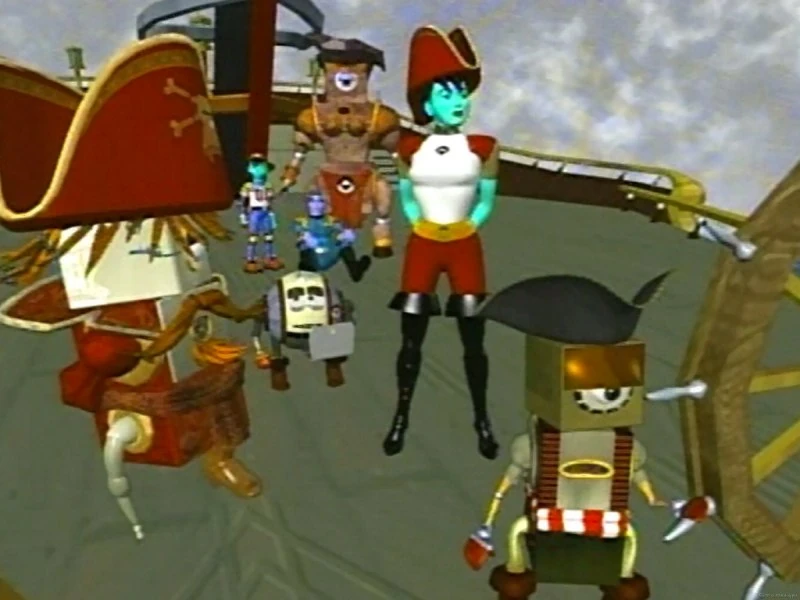 After Mainframe was cut off from the Net, the Saucy Mare tried to open up trade in other systems but ended up in trouble. Most of the crew was arrested and the Saucy Mare was impounded in the Desert Port System's wharf. Captain Capacitor and Mr. Christopher managed to get away and the Guardians offered a 10,000 unit reward for them, deleted or compiled. With the help of Matrix and AndrAIa, Captain Capacitor freed his crew and retook the Mare, fleeing the system.
